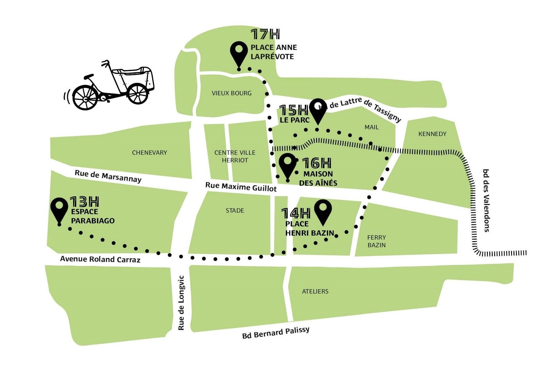 Chaque premier mercredi du mois, de 13h à 18h, élus et agents seront à votre écoute avec la mairie mobile ! Le vélo-cargo de la mairie mobile sillonnera les quartiers de Chenôve !